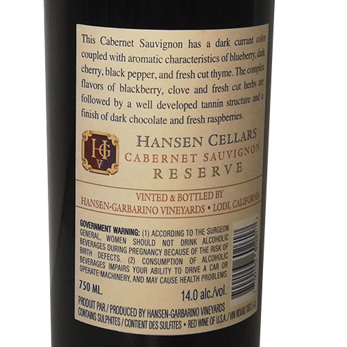 加州罗迪产区汉森赤霞珠干红